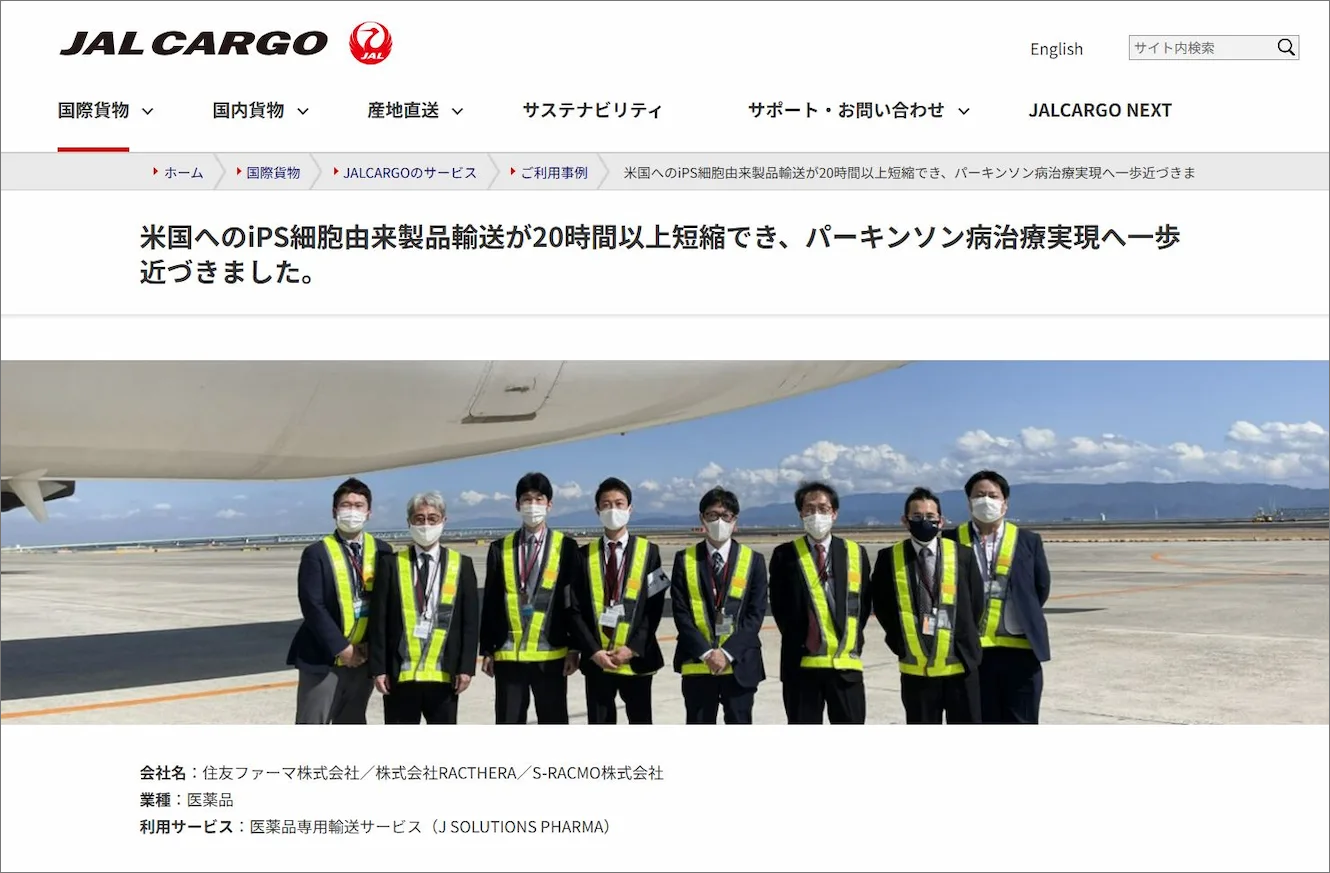 iPS細胞由来製品輸送プロジェクトを日本航空株式会社様のホームページで特集いただきました。