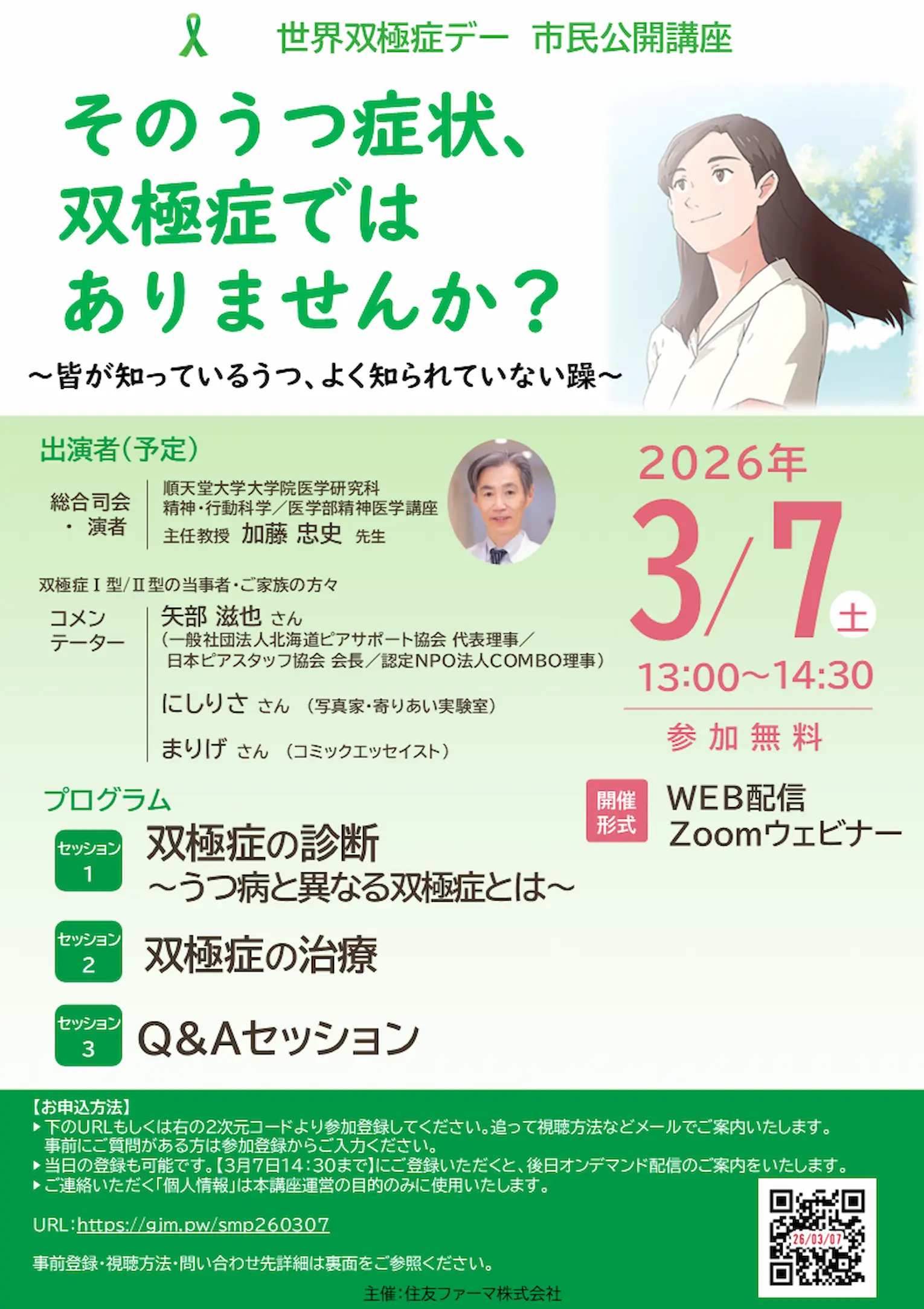 【開催案内】そのうつ症状、 双極症ではありませんか?~皆が知っているうつ、よく知られていない躁~